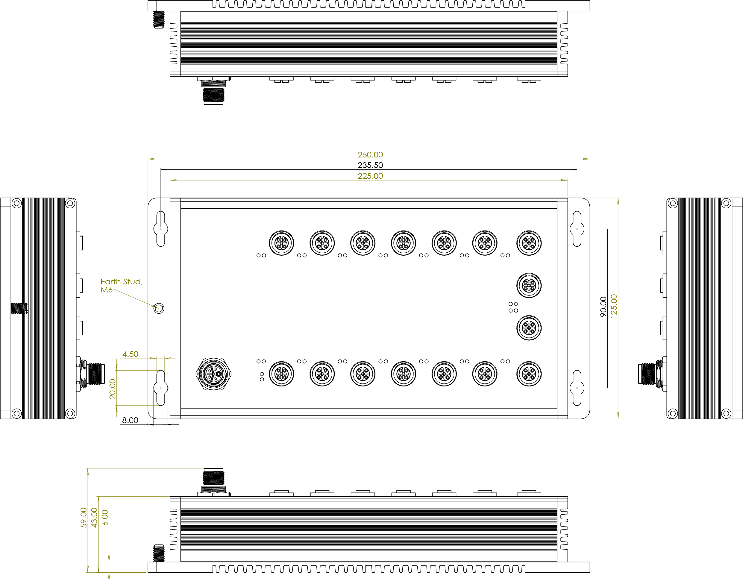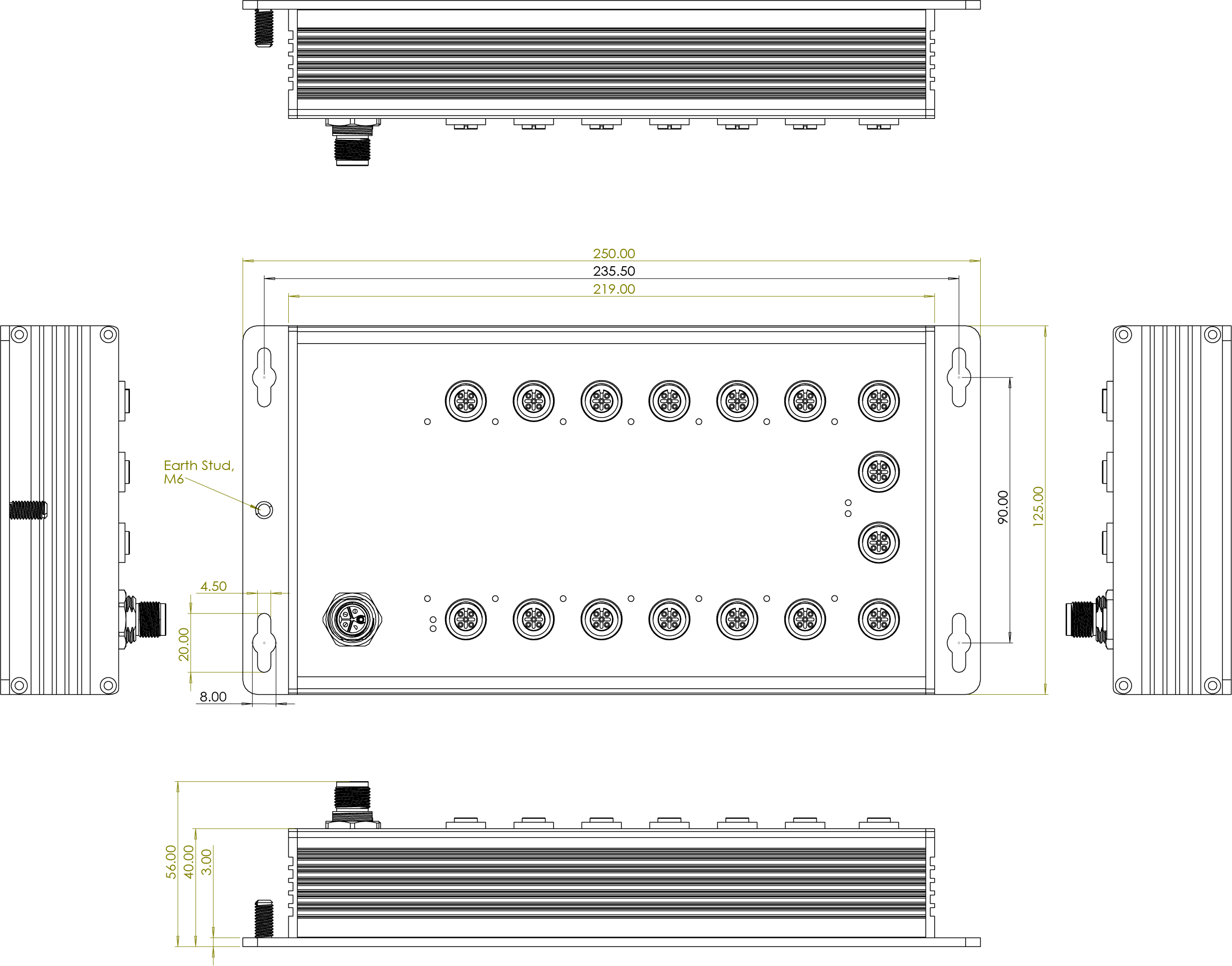| 8361-1001 | TPES-0016T-16-54-24VI-E | 16 10/100TX PoE at/af unmanaged Ethernet Switch w/M12 connectors; -40°C to 75°C; 9~36VDC dual input w/ PoE & Ethernet galvanic isolation; IP54 rated |